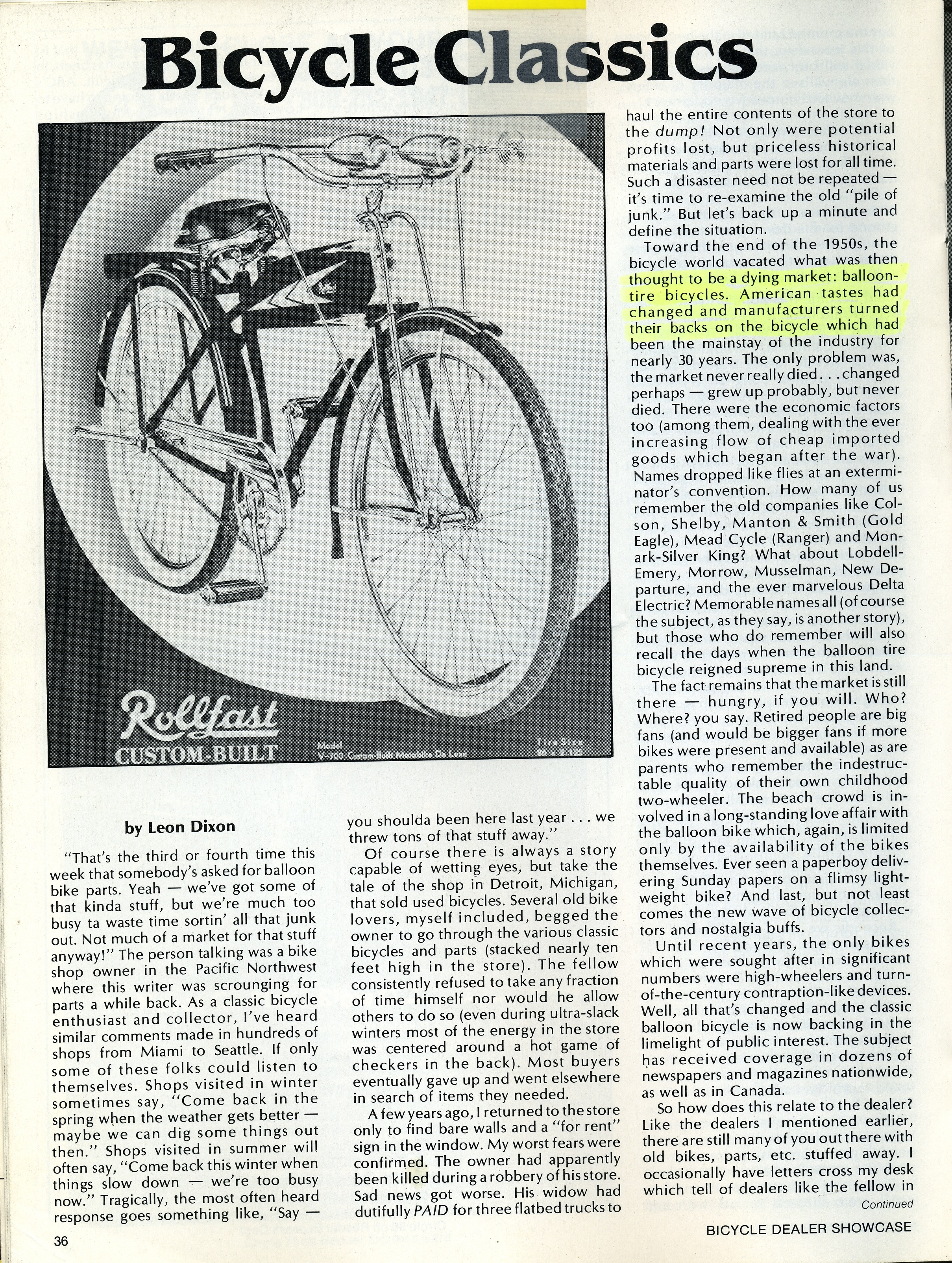So when some gas bag comes up today criticizing and bemoaning that Leon Dixon wants too much credit for starting the hobby ...and how did one guy get all these people to know about CLASSIC BICYCLES and the hobby that did not exist before... SHOW THE GAS BAG THIS ARTICLE AND the first POPULAR MECHANICS article. THAT's how! And then ask the gas bag where they were when this was all happening and what did THEY do of significance?