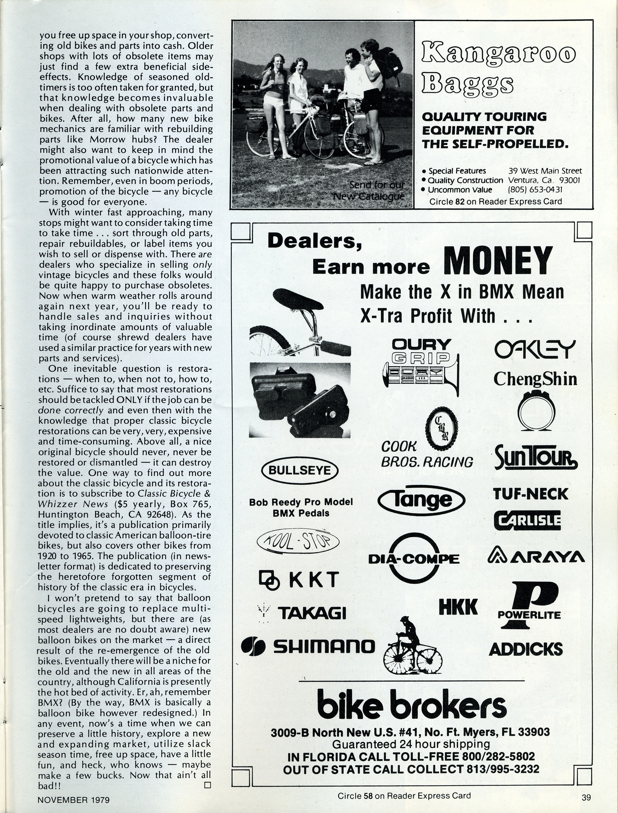 YEARS after our BDS article in JULY, 1981, the almighty American Bicyclist magazine curiously ran a similar article (curiously with no "byline") with whole sentences lifted out of this article (you can read them for yourself on PAGE 61)!